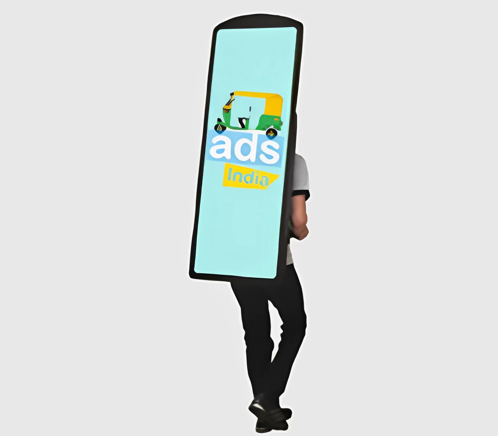 Innovative walking billboard displays with battery-operated LED lighting, ideal for on-ground promotions and campaigns.