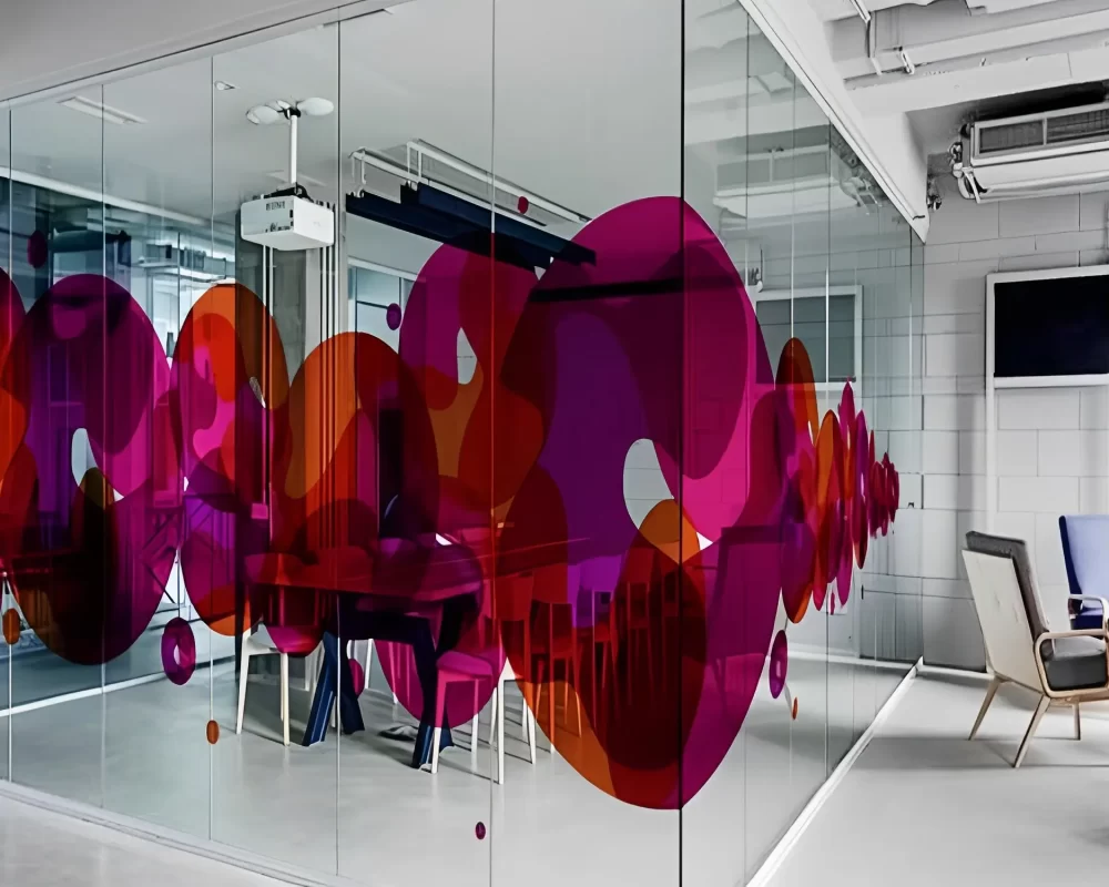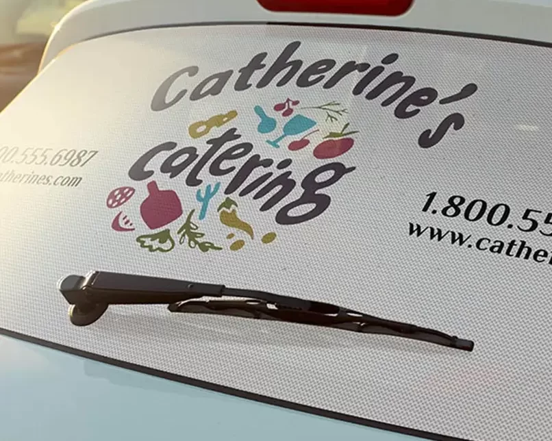 Perforated vinyl for glass surfaces, offering clear visibility from inside while showcasing graphics outside.
