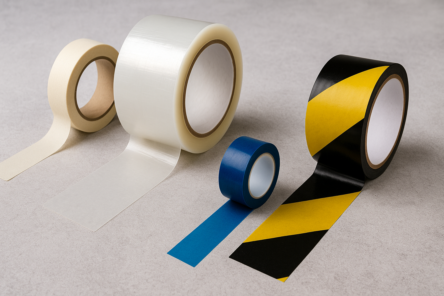Versatile tapes for surface protection, masking, marking, and safety applications, ideal for painting, flooring, and transport.